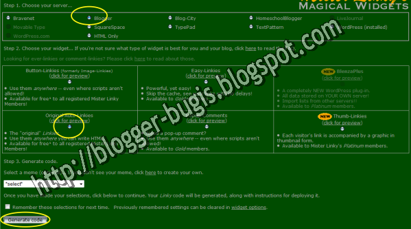 - Pilih "Original Auto-Linkies" pada Step 2. Choose your widget...